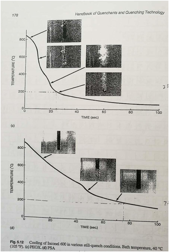 如圖 2 所示的每種聚合物水溶液,在 A 期冷卻階段,在金屬圓棒周圍形成層蒸汽膜。很明顯,該膜的性質(如強度、厚度、粘度等)控制該區的冷卻過程。